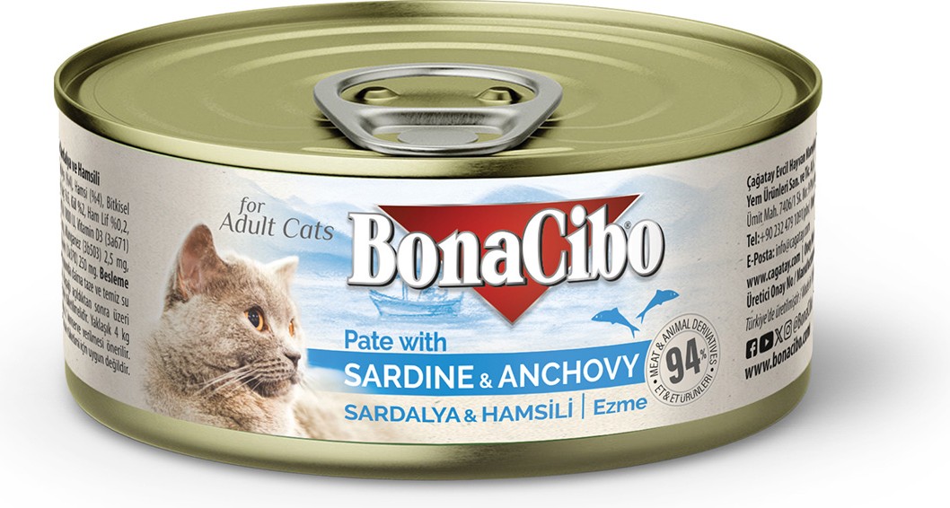 BonaCibo Pâté Sardine-Thon Nourriture humide pour chat Aliment humide complet pour chat adulte