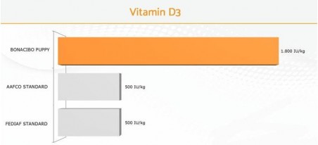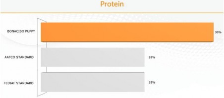 BonaCibo puppy super premium au poulet et poisson est préparé pour les chiots de toutes les races jusqu'à 12 mois et pour les chiennes en gestation et en lactation.