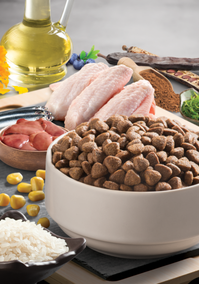 INGRÉDIENTS: Protéine de poulet séchée (37%), riz Baldo (18%), maïs, huile de poulet raffinée, farine d'anchois (6%), levure de bière, huile d'anchois, caroube, foie de poulet hydrolysé, protéine de levure nucléotidique, betterave à sucre séchée Minéraux, oligo-saccharides prébiotiques de Mannan, algues, poudre de myrtille, extrait de lustre, pisyllium, poudre de souci.