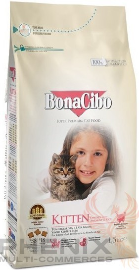 BonaCibo kitten super premium 1.5kg a été préparé pour les chatons de toutes les races jusqu'à 12 mois et pour les chats de grossesse et d'allaitement.