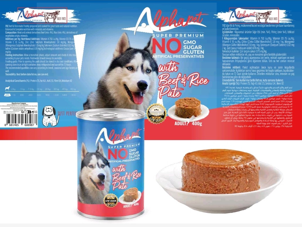 Boite ALPHAPET Pâté Beef & Rice Adult Dog 400g
