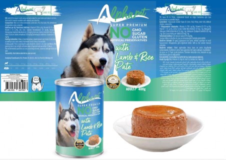 Boite ALPHAPET Pâté Lamb & Rice Adult Dog 400g